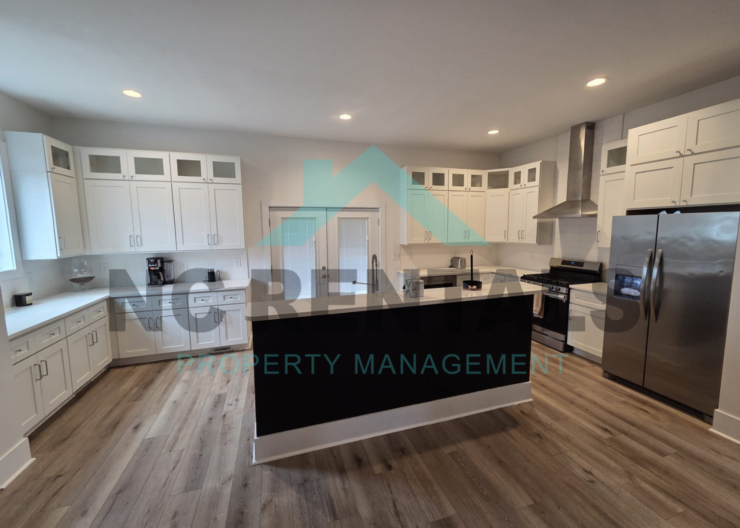 - Fully equipped kitchen with stove, refrigerator, dishwasher, microwave, coffee maker, toaster, and range hood